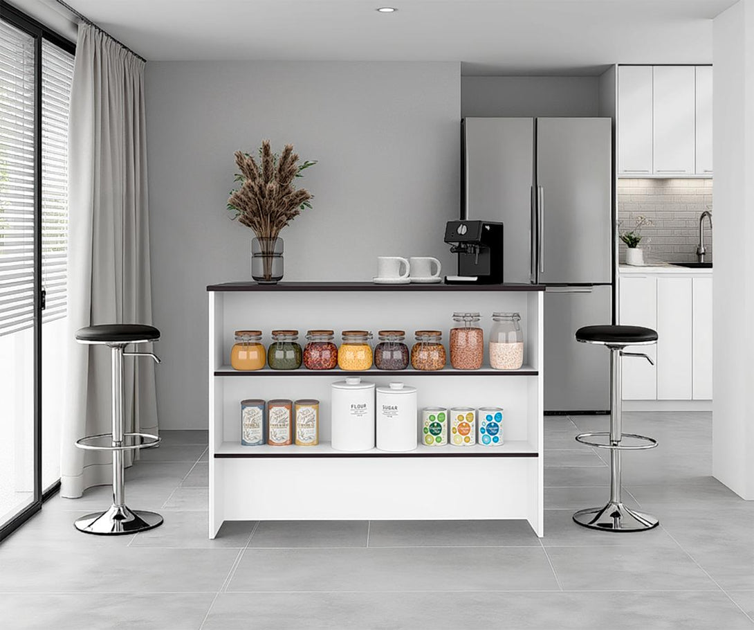 Barra de Cocina Diamante, Kronos Blanco y Kronos Wengue, Con Entrepaños ZF