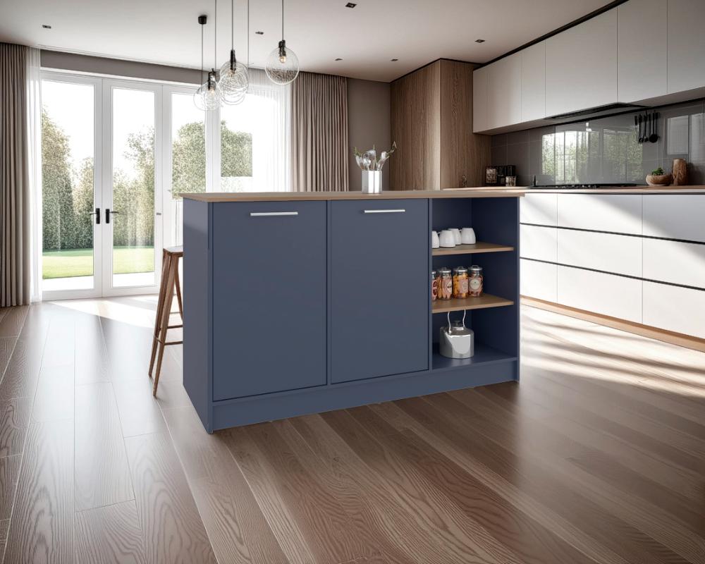 Barra de Cocina Lugano, Azul y Fresno Kronos, con Dos Puertas Abatibles