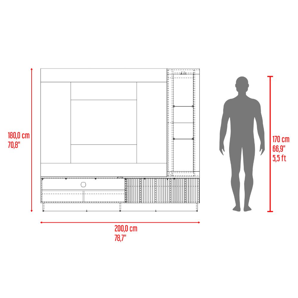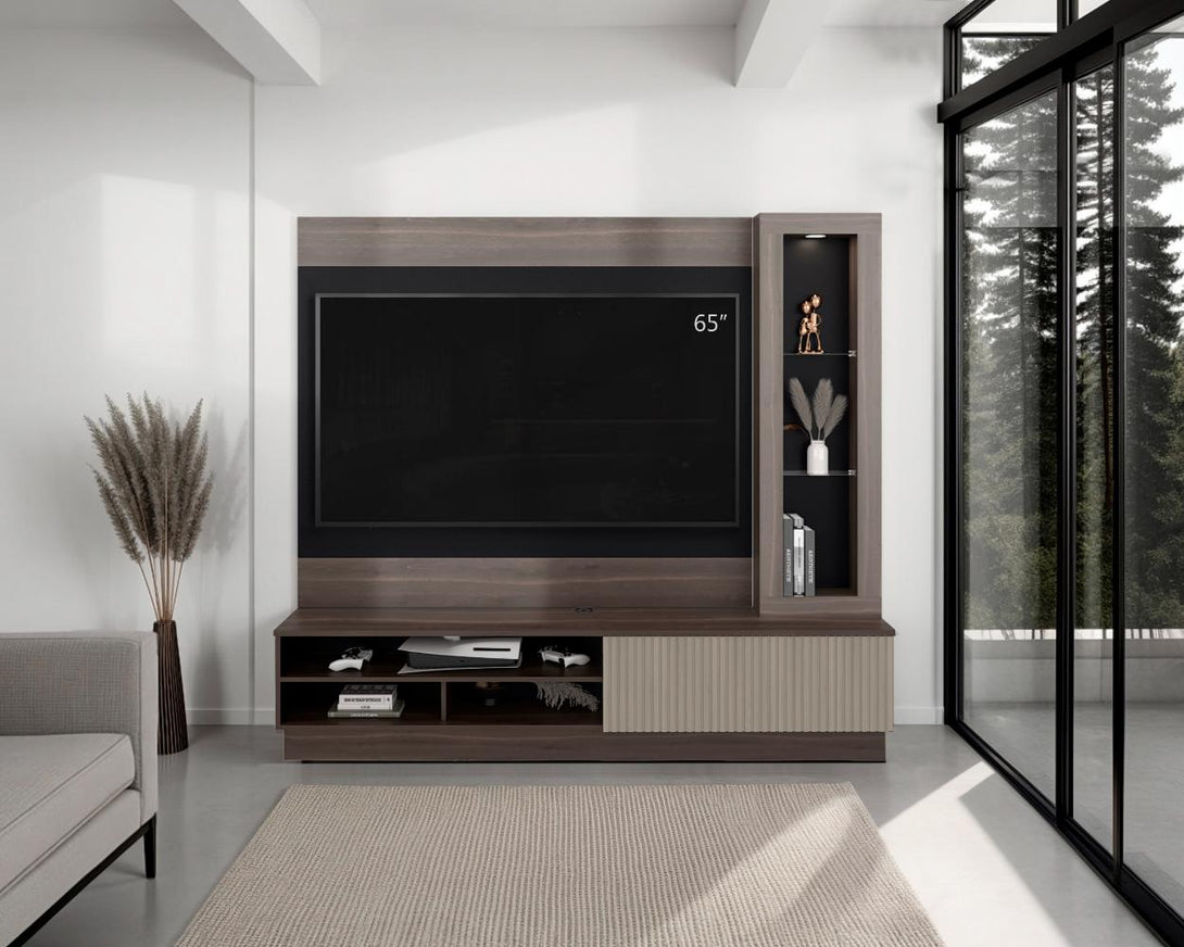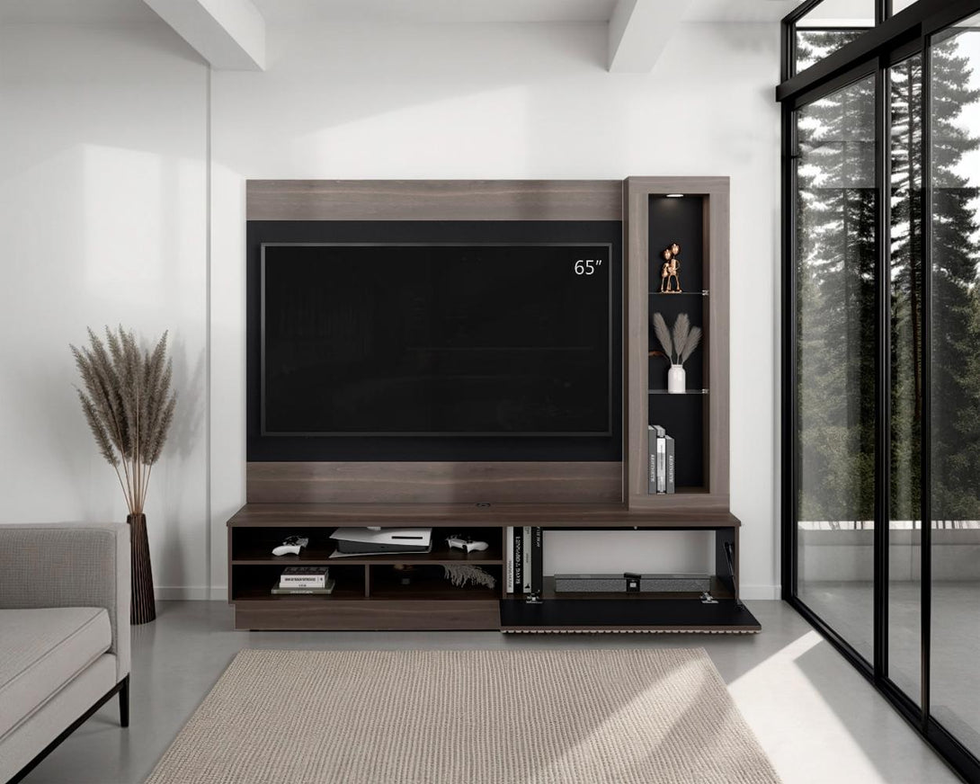 Centro de Entretenimiento Yakarta, Milan y Roble Natural, con Espacio Para Televisor para Hasta 65 Pulgadas y Varios Entrepaños