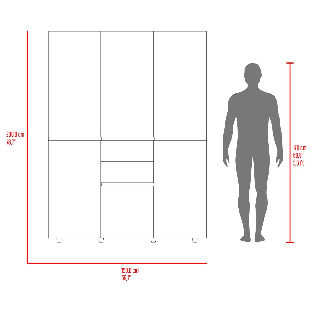 Closet, cuenta con 6 puertas abatibles, dos cajones multiusos, 4 entrepaños divisores, tubos metalicos, con gran capacidad de almacenamiento