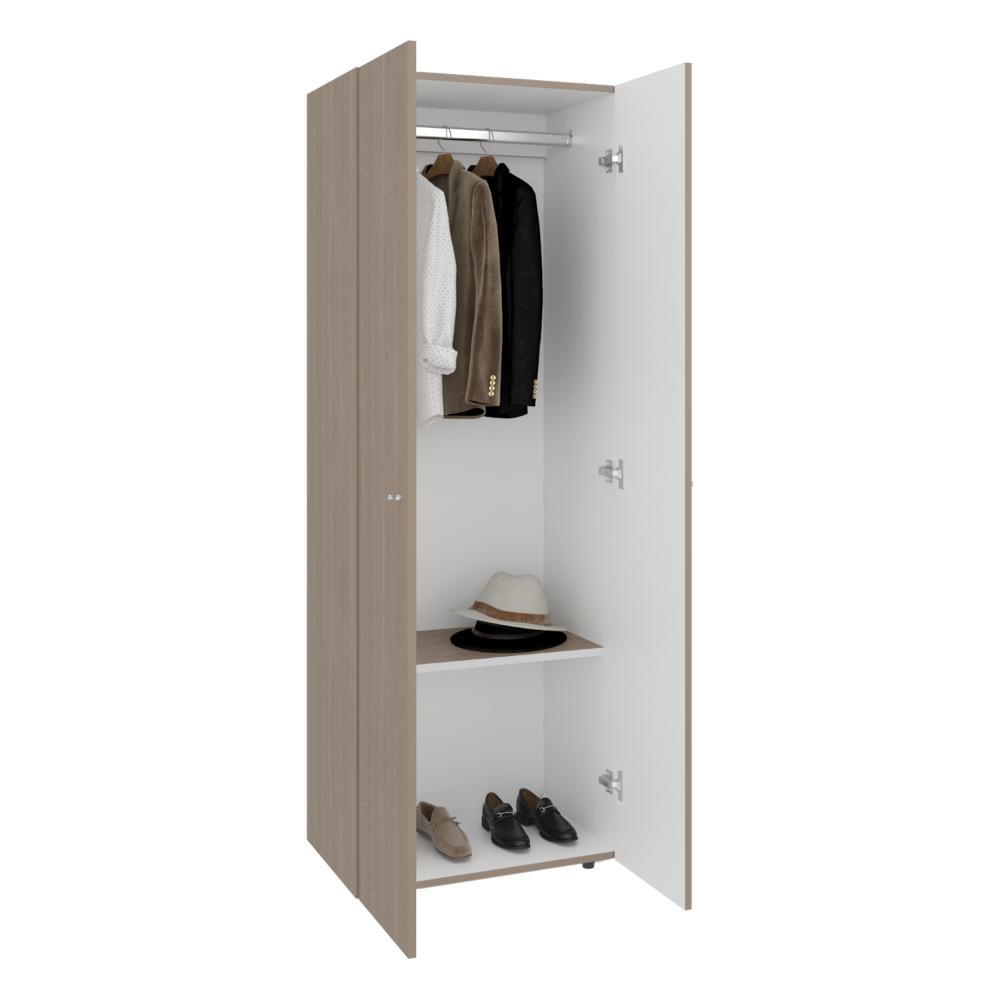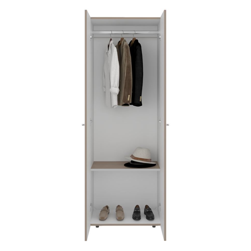 Closet Beico, Bardolino y Blanco Duqueza, con dos Puertas Abatibles y un Tubo cromado