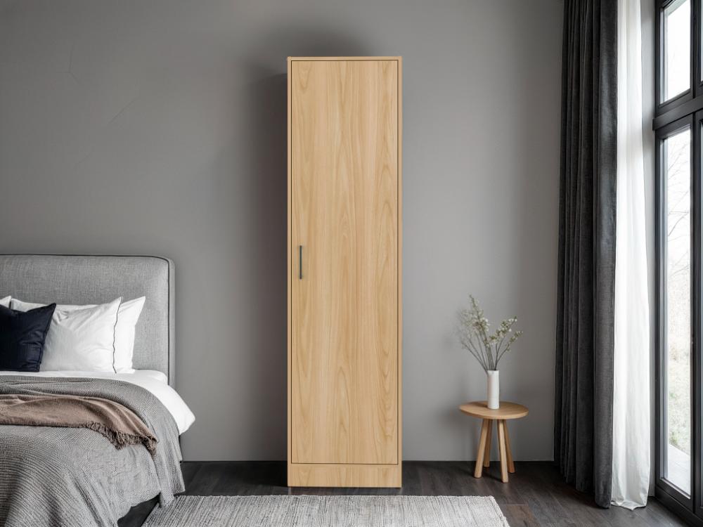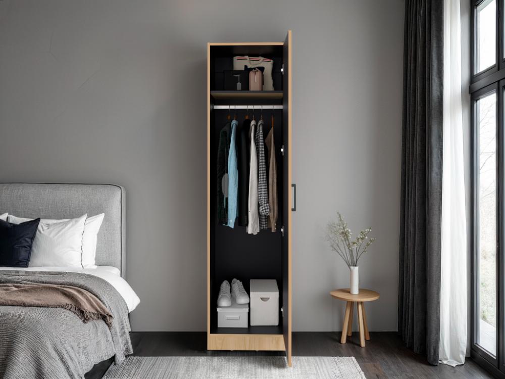 Closet Cley, Fresno Europeo y Wengue, con un tubo de acero cromado para colgar ropa