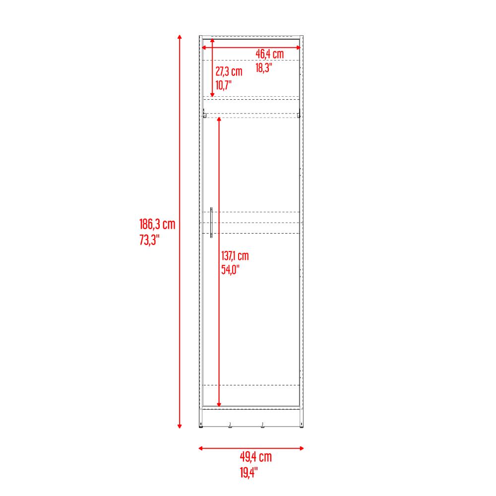 Closet, amplio espacio, entrepaño para organizar, un tubo de acero cromado para colgar, una manija y de facil armado.