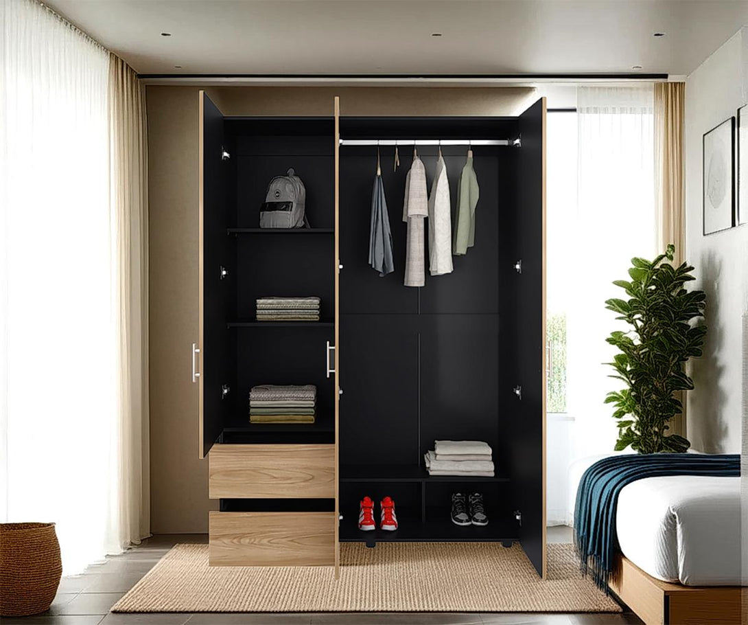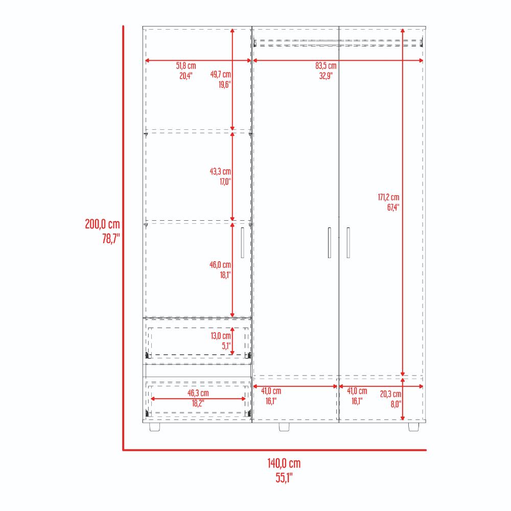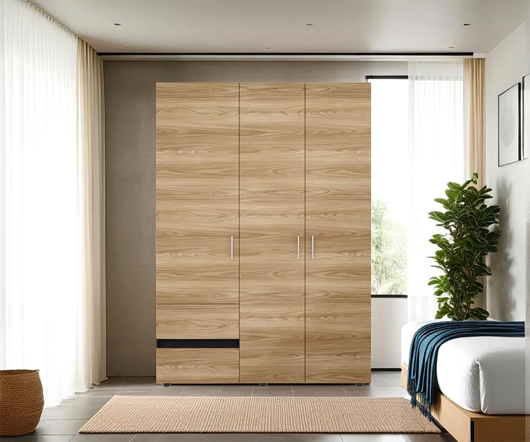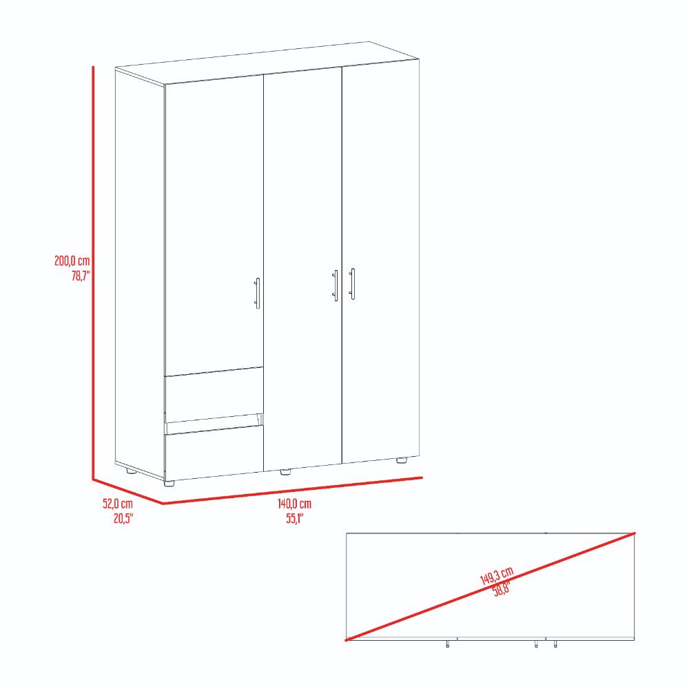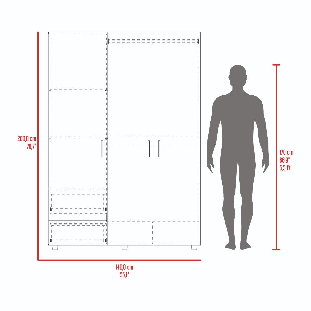 Closet Light 140, Fresno Europeo y Wengue, con tres puertas abatibles