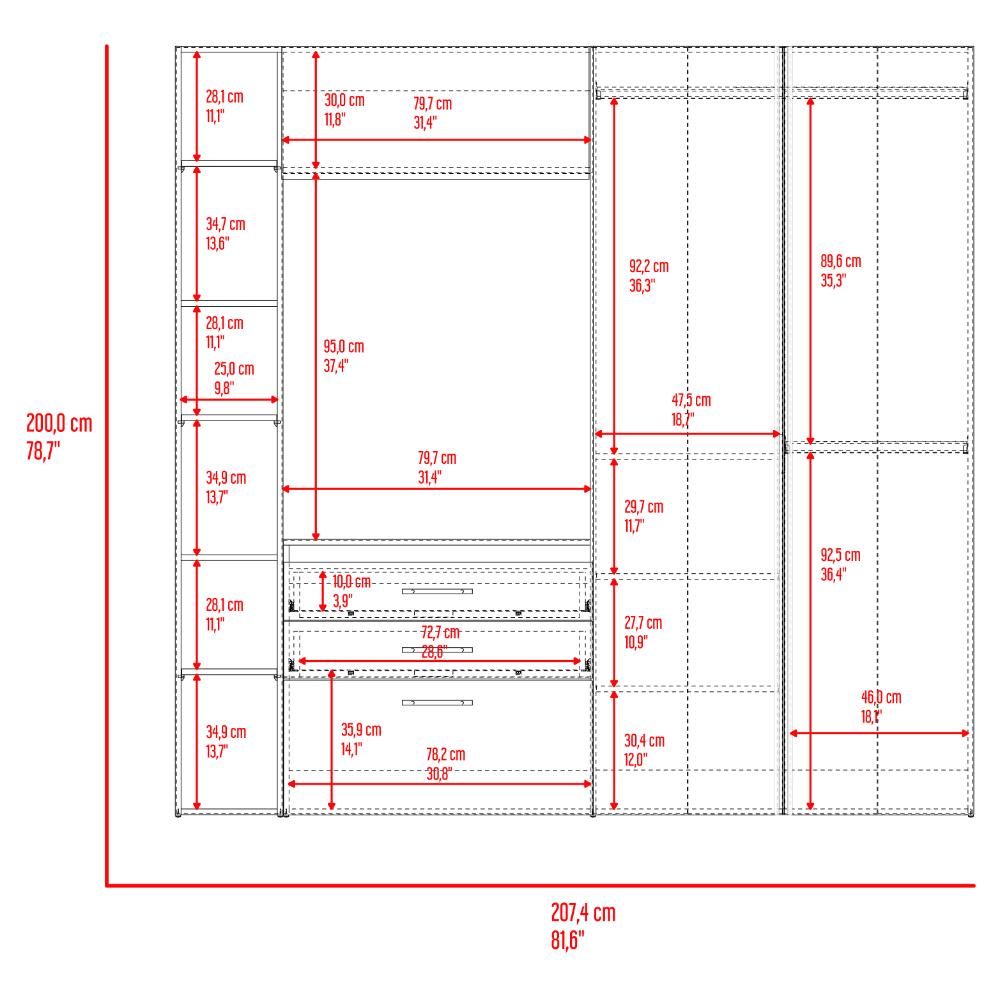 Closet Multifuncional Bruson, Fresno Europeo y Wengue, con cajones para guardar ropa y objetos de oficina