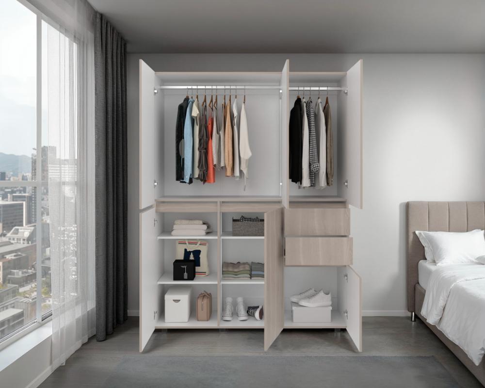 Closet Siruela 150, Bardolino y Blanco, con Seis Puertas y Gran Capacidad de Almacenamiento