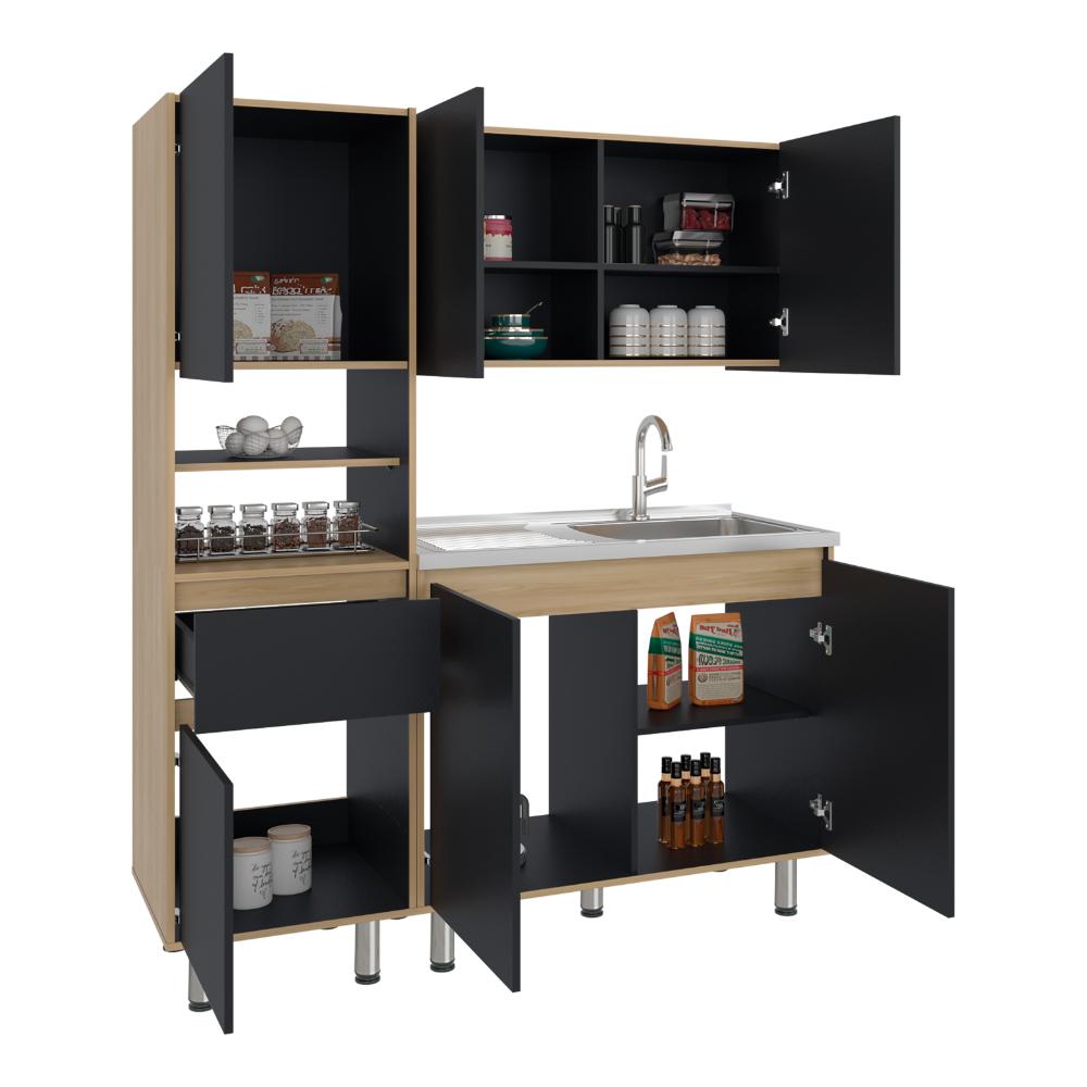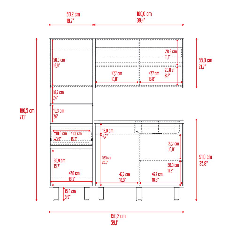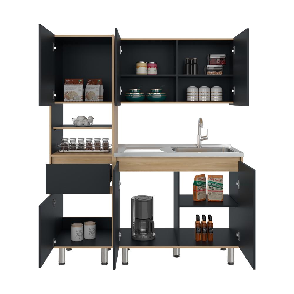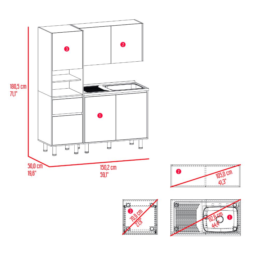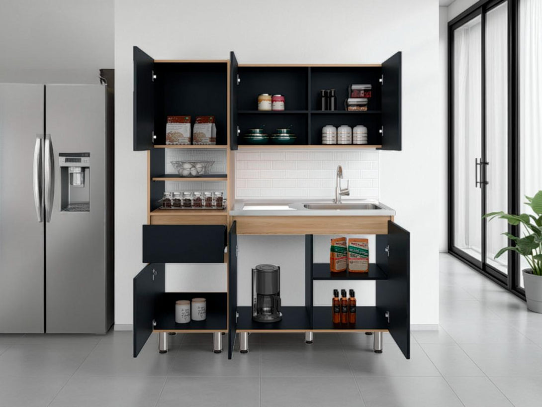 Cocina Integral, Amplios espacios para guardar alimentos y otros objetos, en el mueble superior cuenta con 2 puertas abatibles y 2 entrepaños divisores, el mueble inferior cuenta con 2 puertas abatibles, un entrepaño divisor, patas metalicas e incluye meson, mueble alacena, con 2 puertas abatibles, patas metalicas y multiples espacios de almacenamiento *INCLUYE MESÓN*