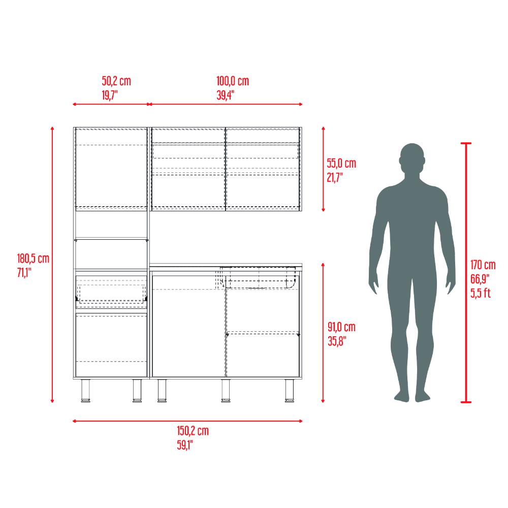 Cocina Integral y Alacena Dali, Fresno Europeo y Wengue, Incluye Mesón Socoda Derecho ZF