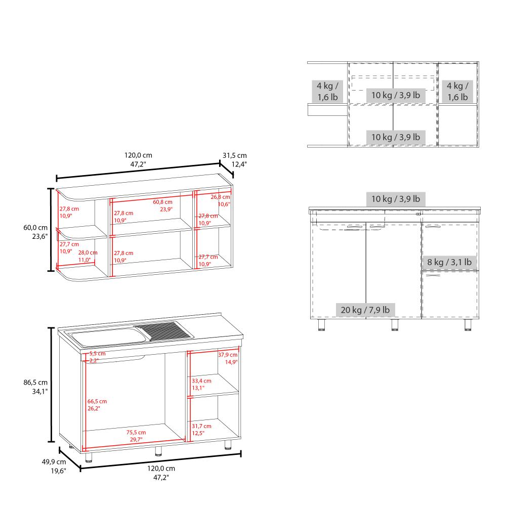Cocina Integral Giotto 120, Kronos Blanco, Incluye Mesón Izquierdo ZF