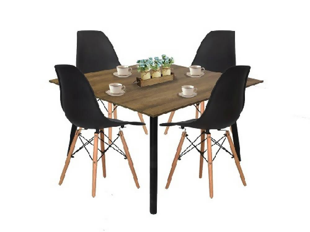 Combo Comedor Cuadrado 4p (75x90x90) Amaretto + 4 Sillas Negras