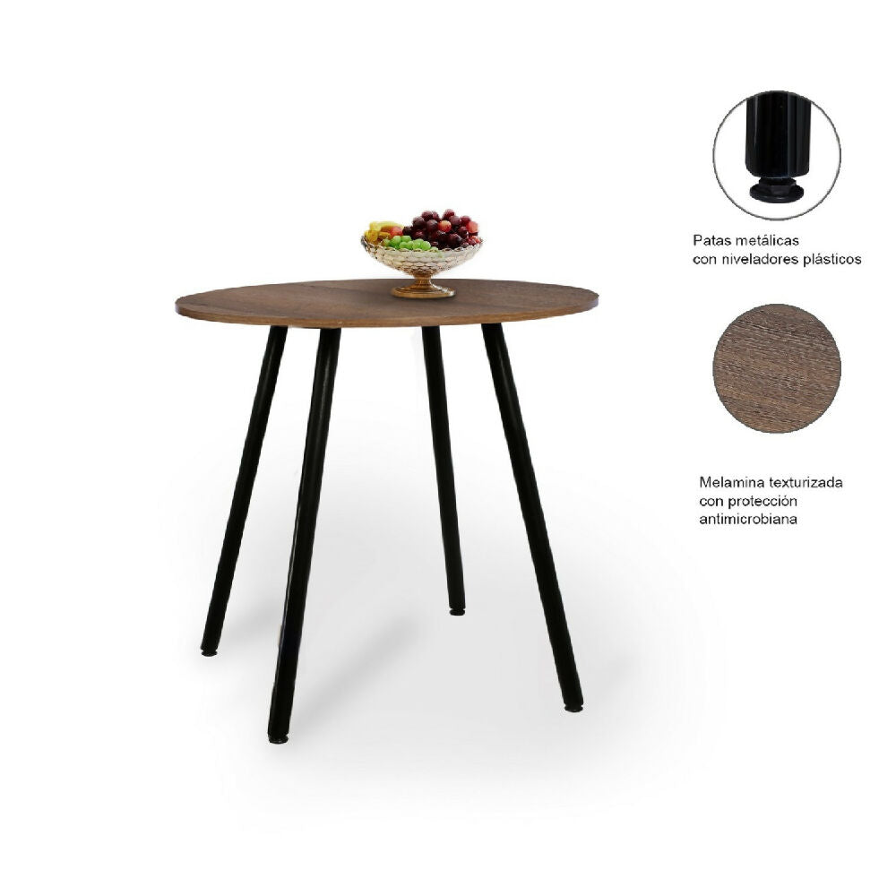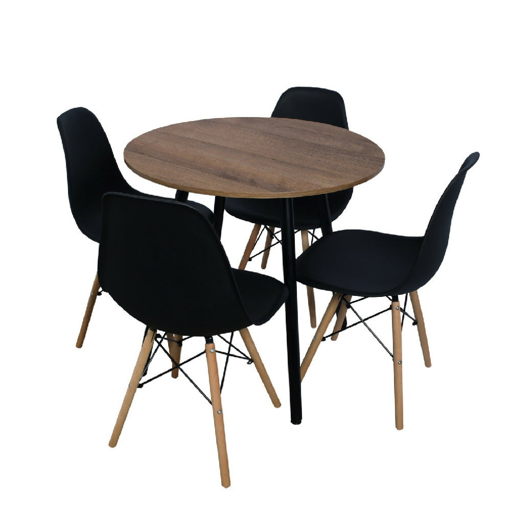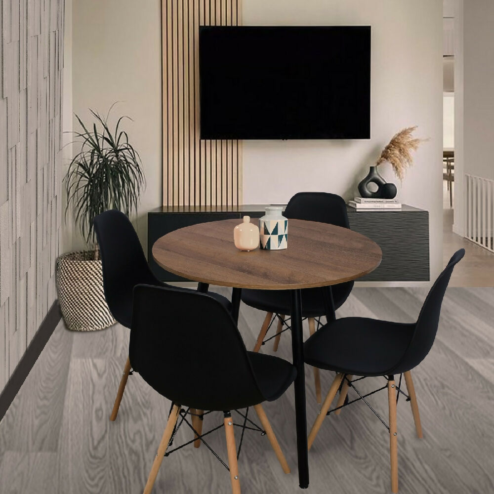 Combo Comedor redondo 4p (75x80x80) Amaretto + 4 sillas negras