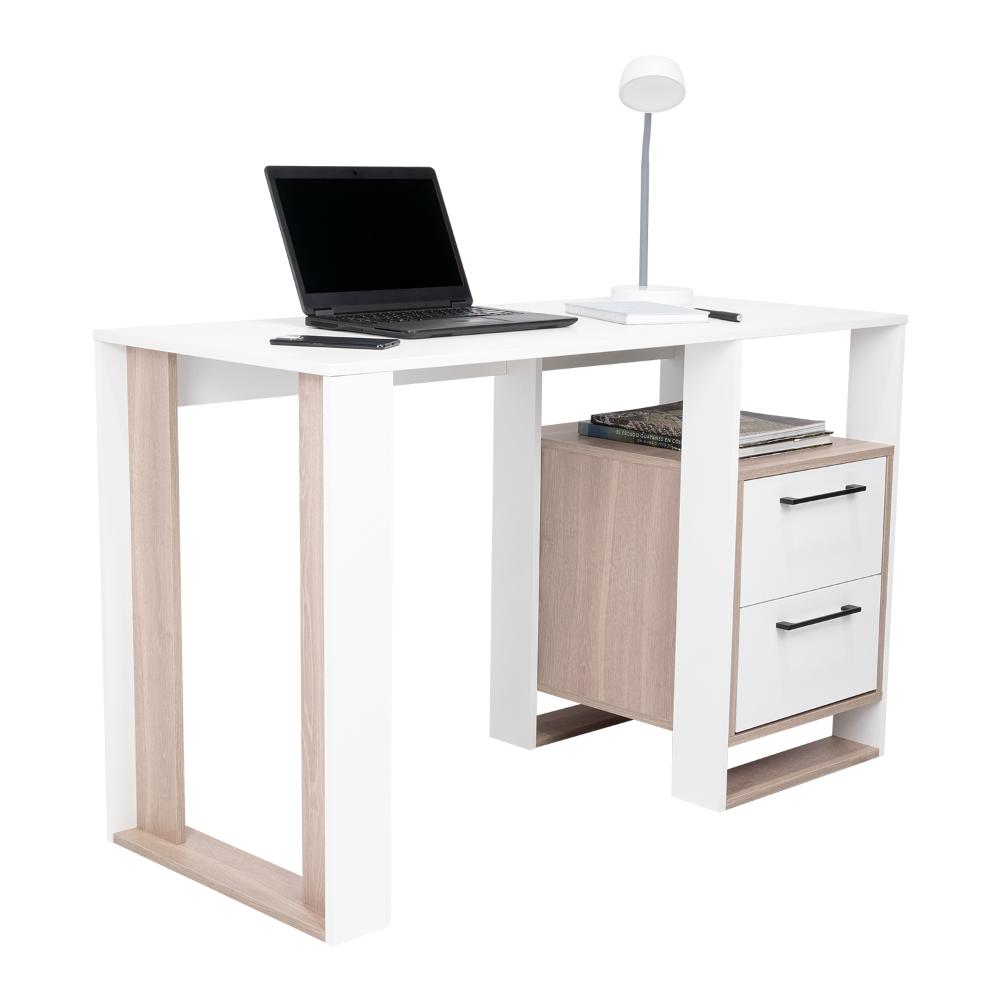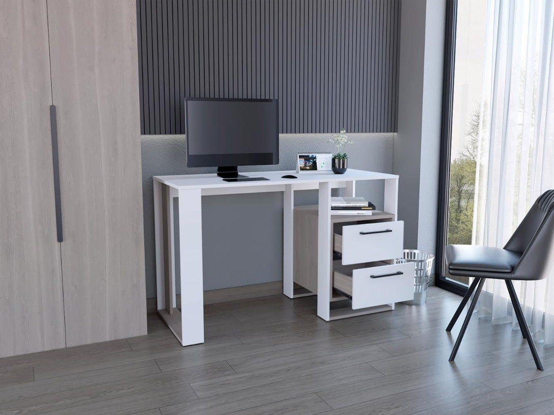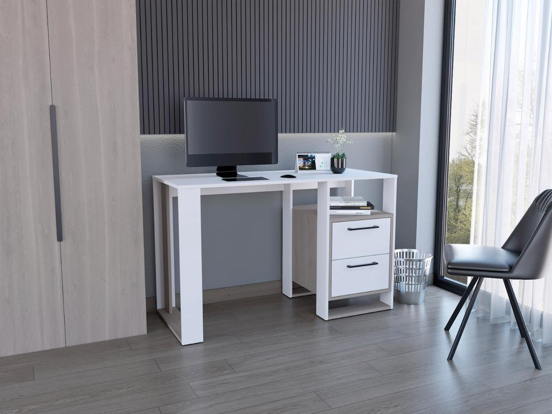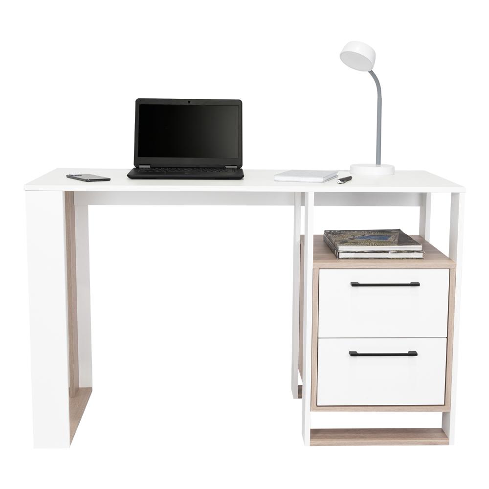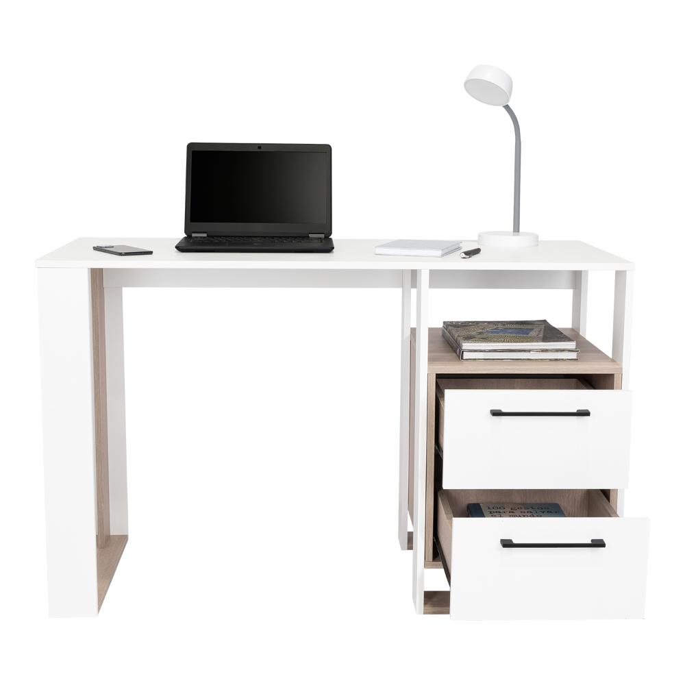 Escritorio Acrep, Blanco Duqueza y Bardolino, con dos cajones para ubicar objetos ZF