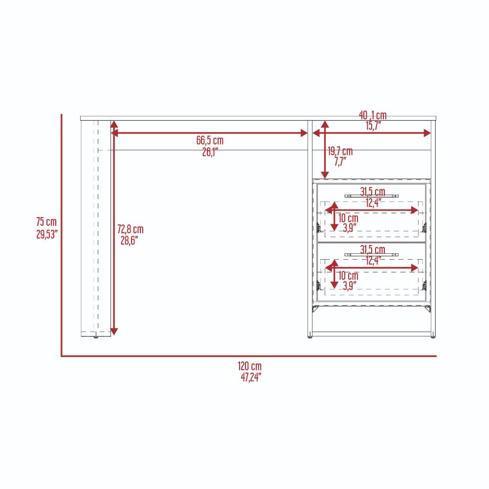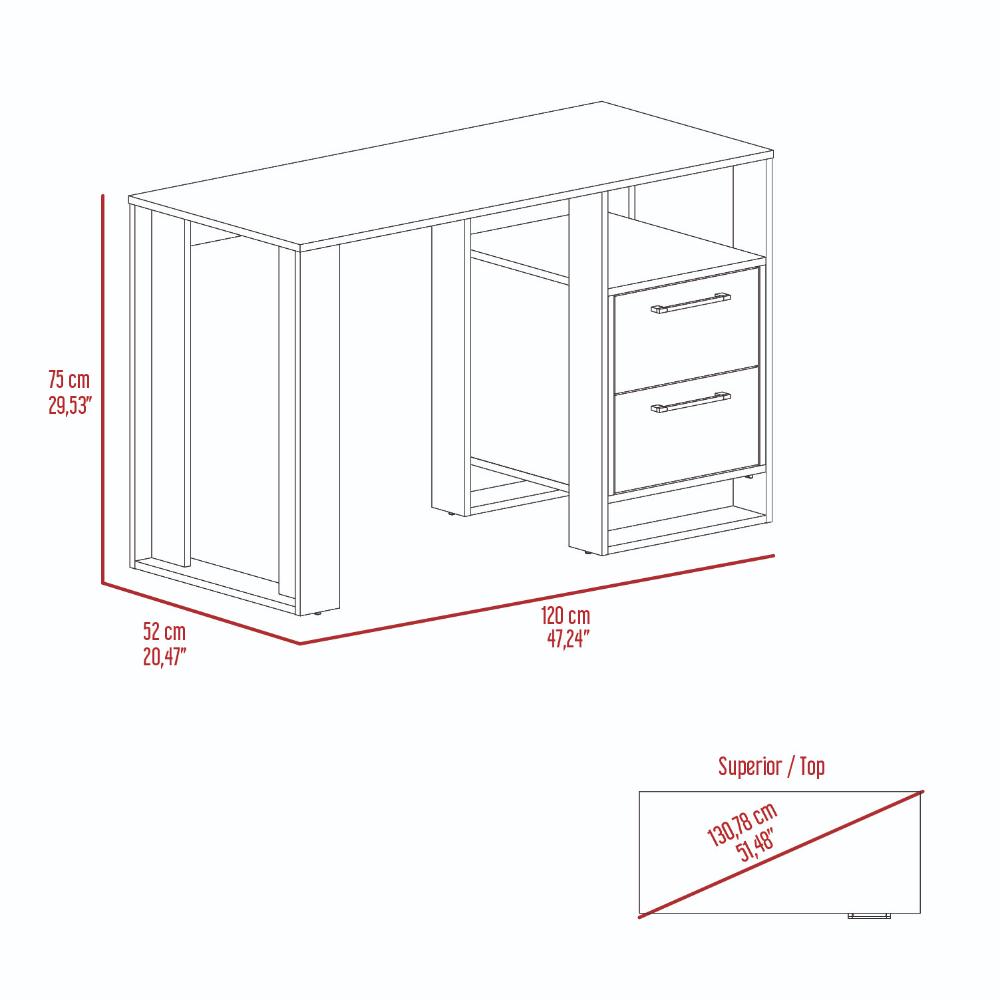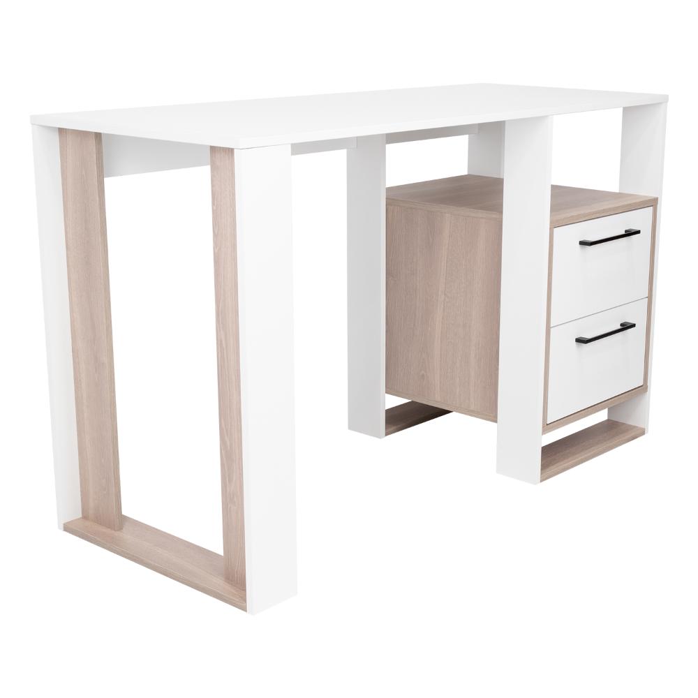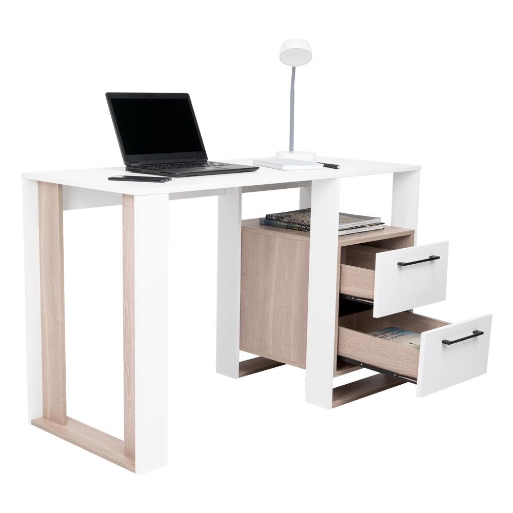 Escritorio Acrep, Blanco Duqueza y Bardolino, con dos cajones para ubicar objetos ZF