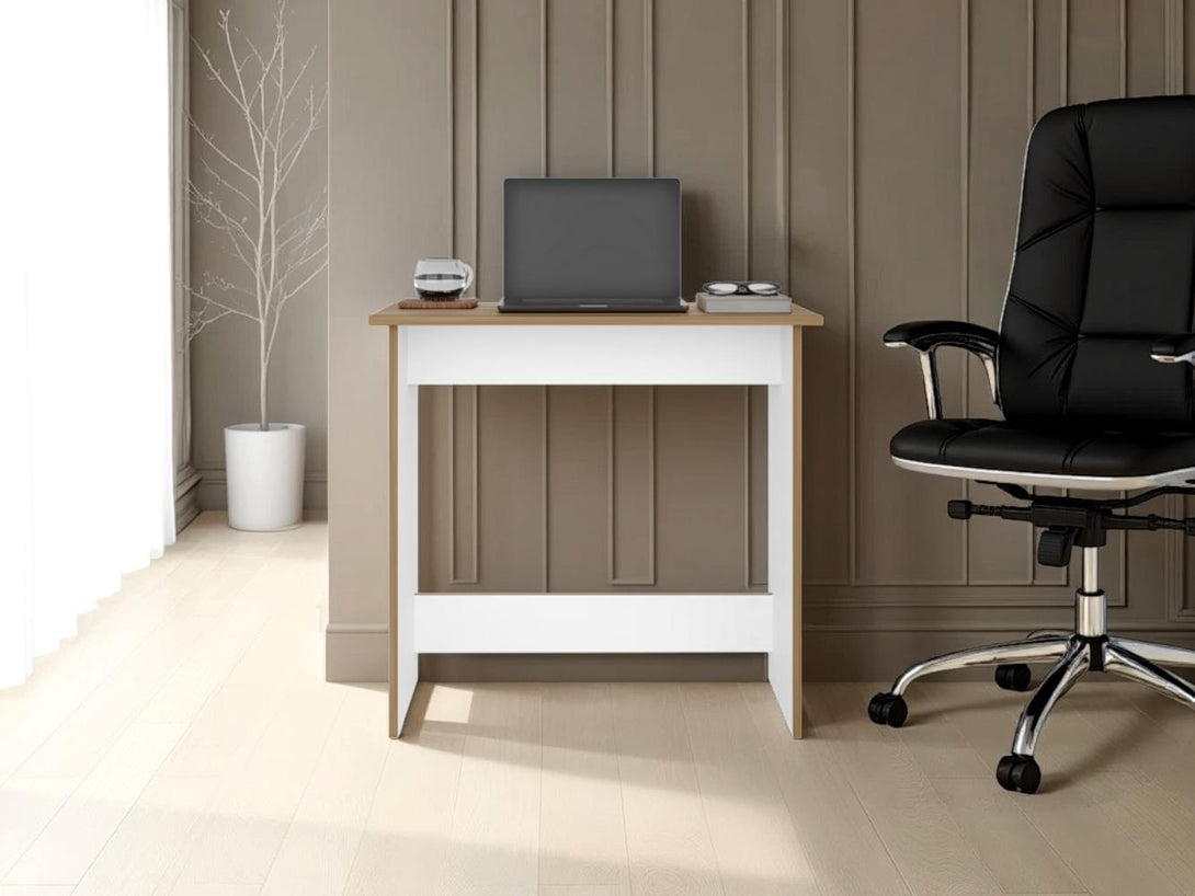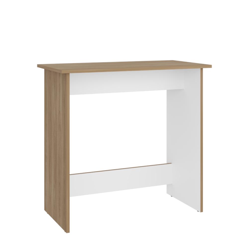 Escritorio Ben Eco, Fresno Europeo y Blanco, con superficie para objetos decorativos