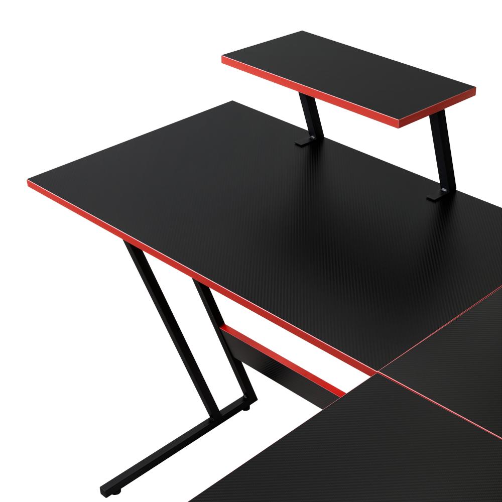 Escritorio Gamer en L, Negro y Rojo, cuenta con espacio para mas de una pantalla