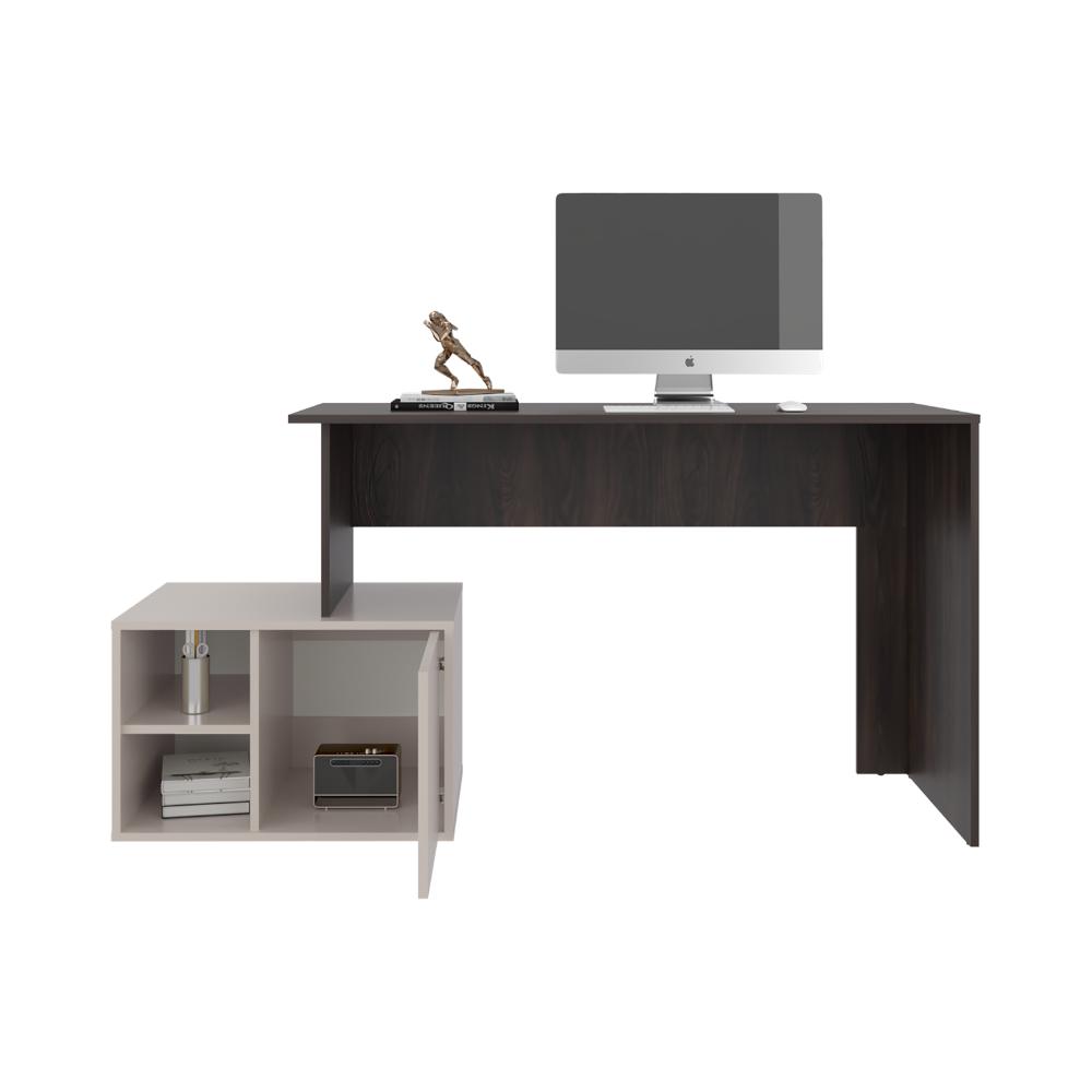 Escritorio con espacio con puerta batiente para almacenar libros u otros, compartimientos para objetos de estudio o decorativos, y de facil armado.