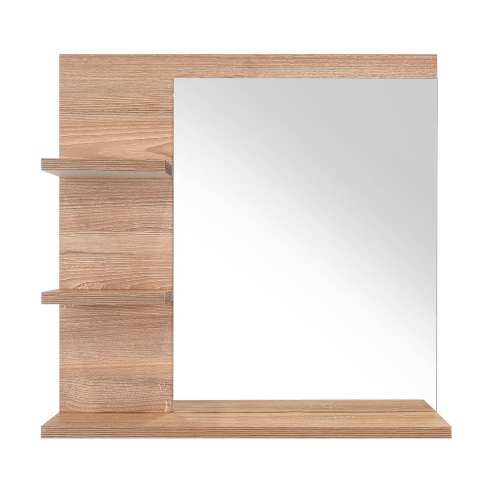 Elaborado en Madera MDP color claro cal 15 mm y espejo rectangular en Cal 2mm, cuenta con 3 tornillos y chazos para facilitar su instalación.
