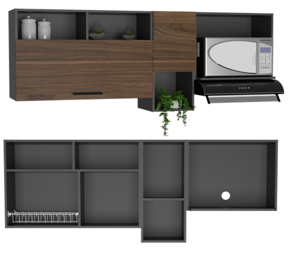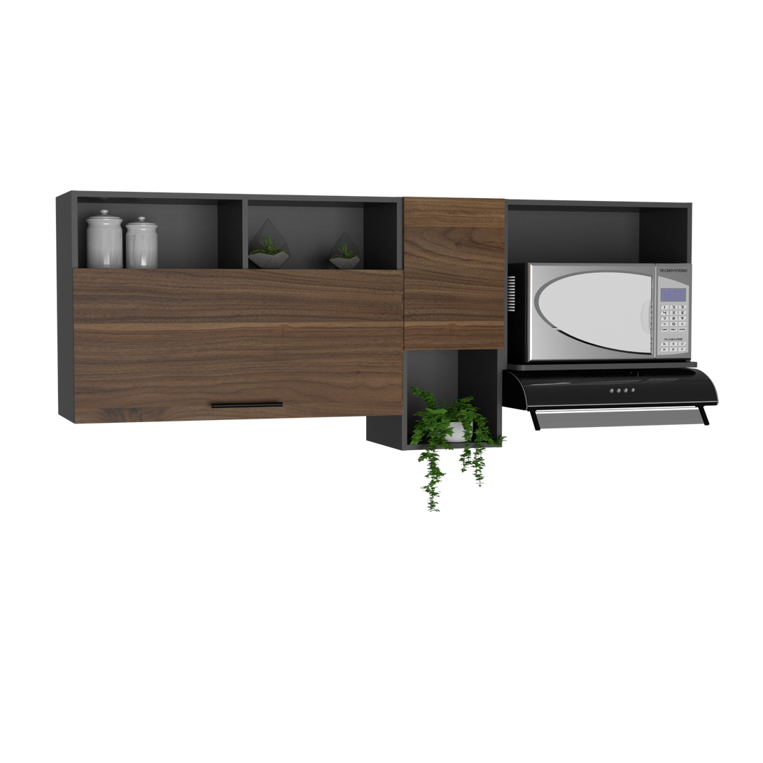 Gabinete Superior Praga, Plata Oscuro y Castaño, con entrepaño para Microondas