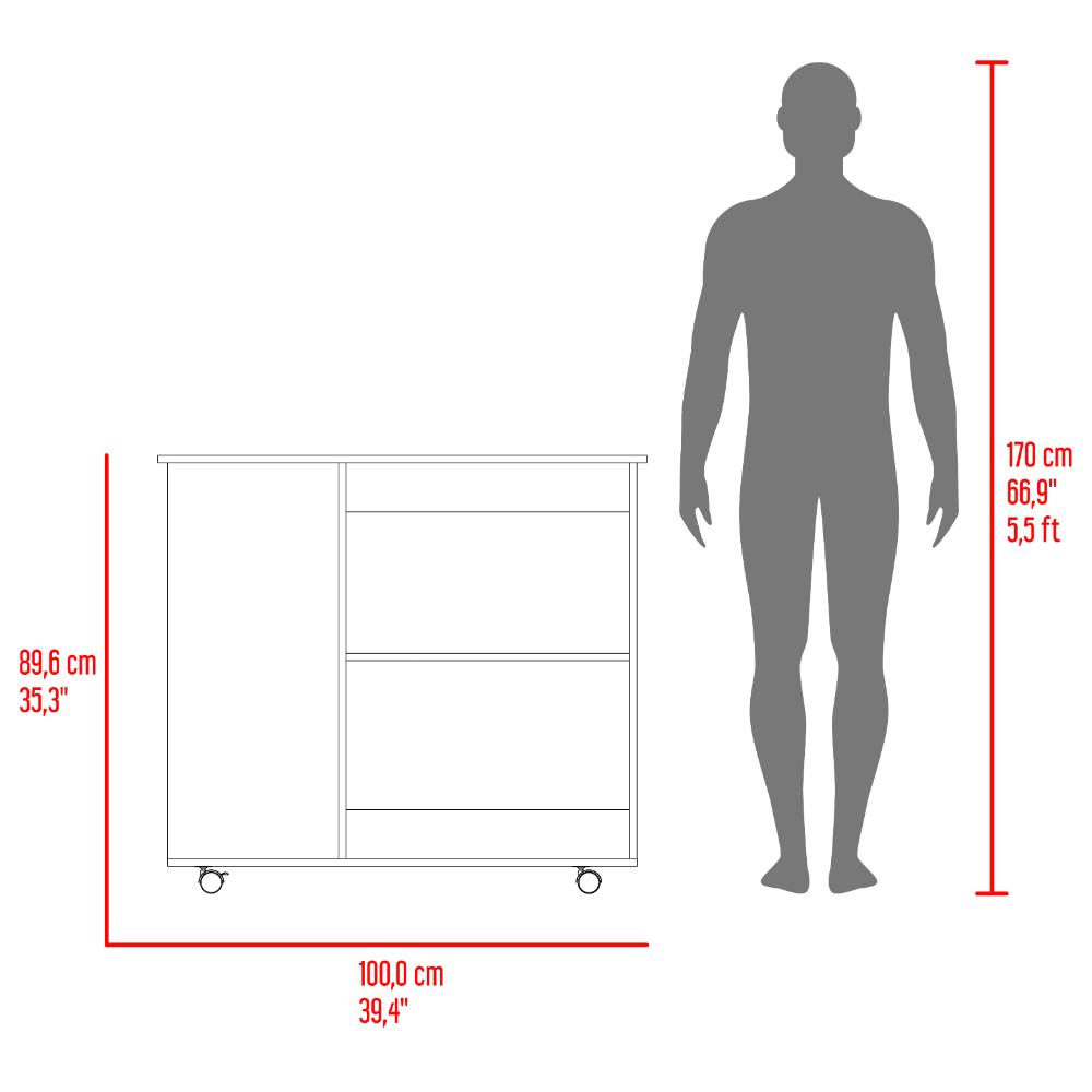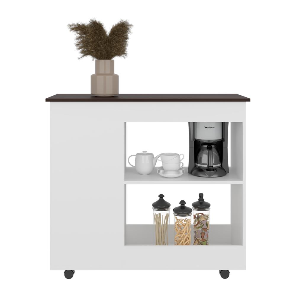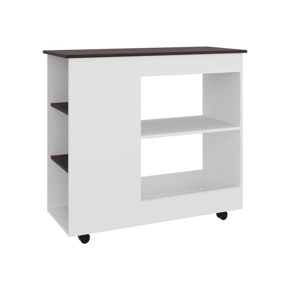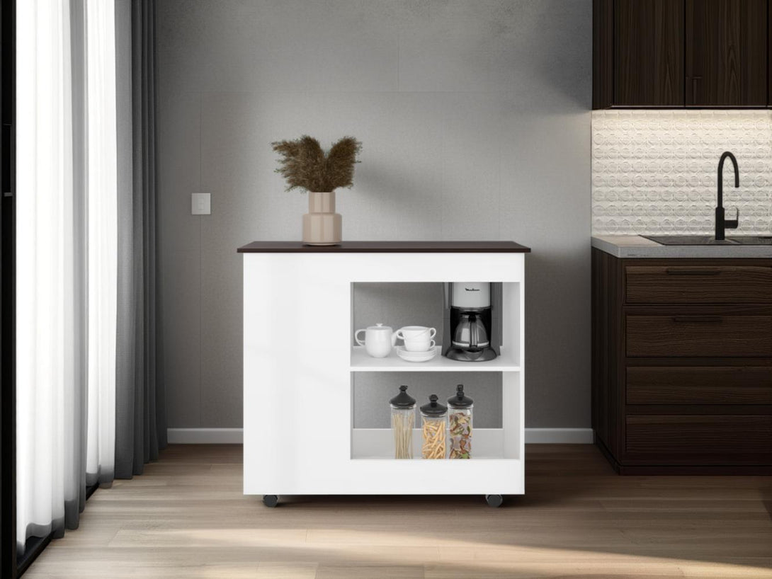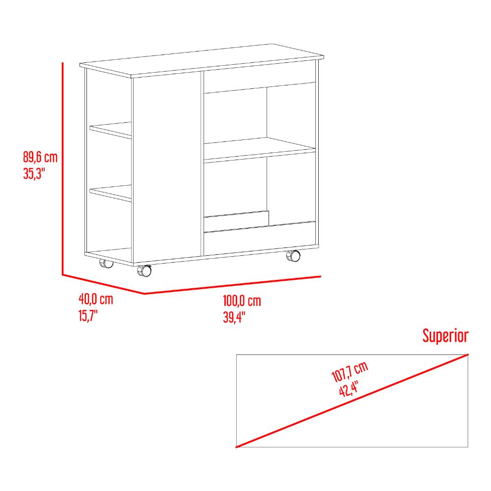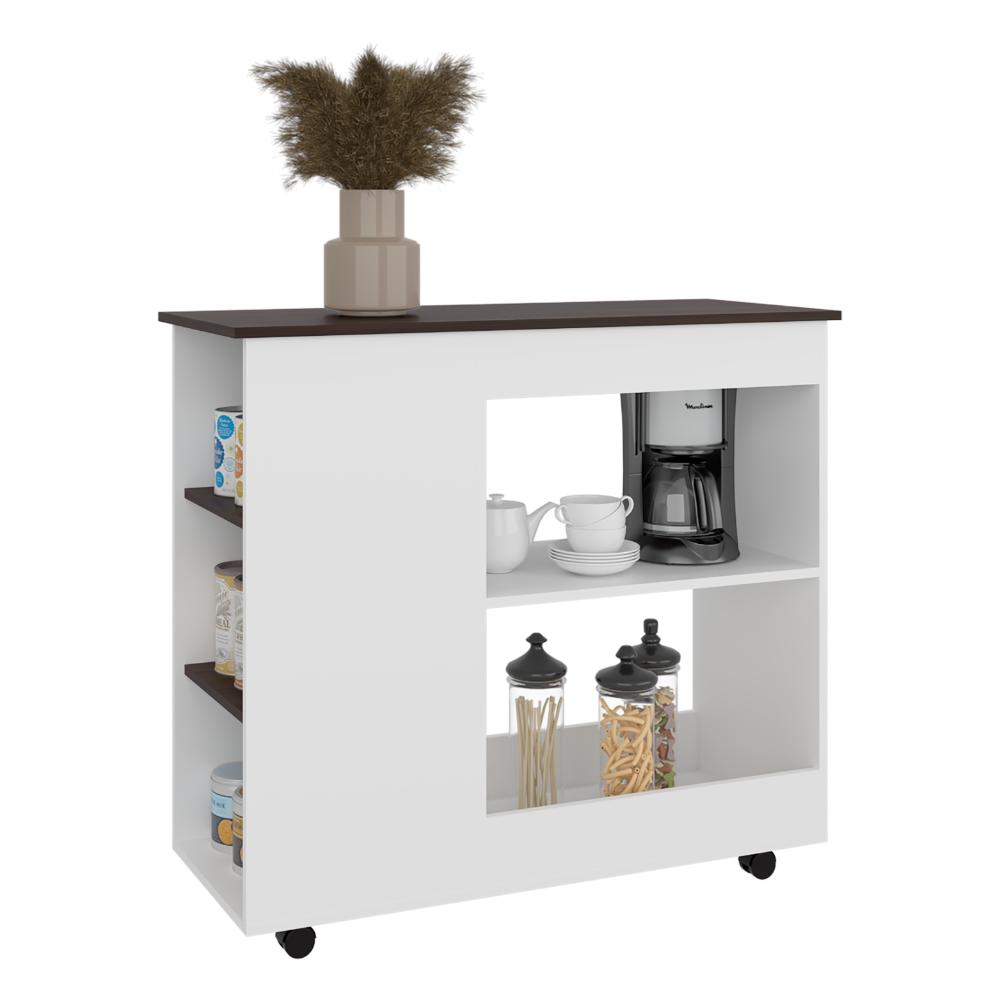 Mesa Auxiliar de cocina, con diseño moderno, tres entrepaños, rodachina y rodachina con freno