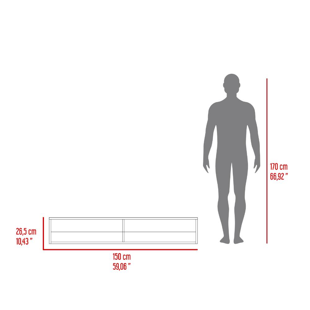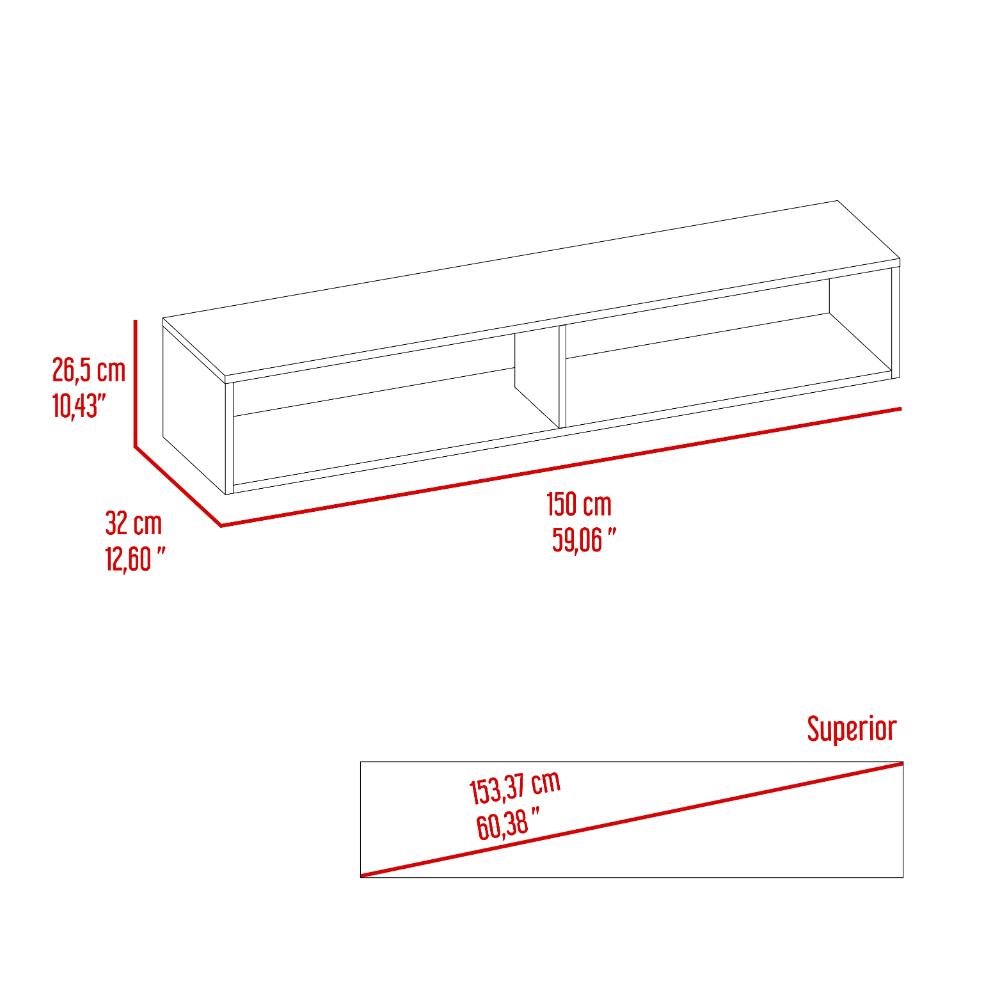 Mesa de TV Flotante, con espacio para ubicar objetos decorativos, equipos de audio video, entre otros. Máximo 65 pulgadas