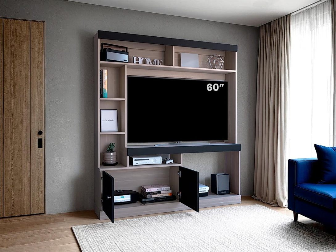 Además de soportar el TV, nuestras mesas las puedes usar para guardar y decorar tus espacios con libros, revistas, consolas, equipos de sonido, etc. Todo el entretenimiento en un solo lugar.