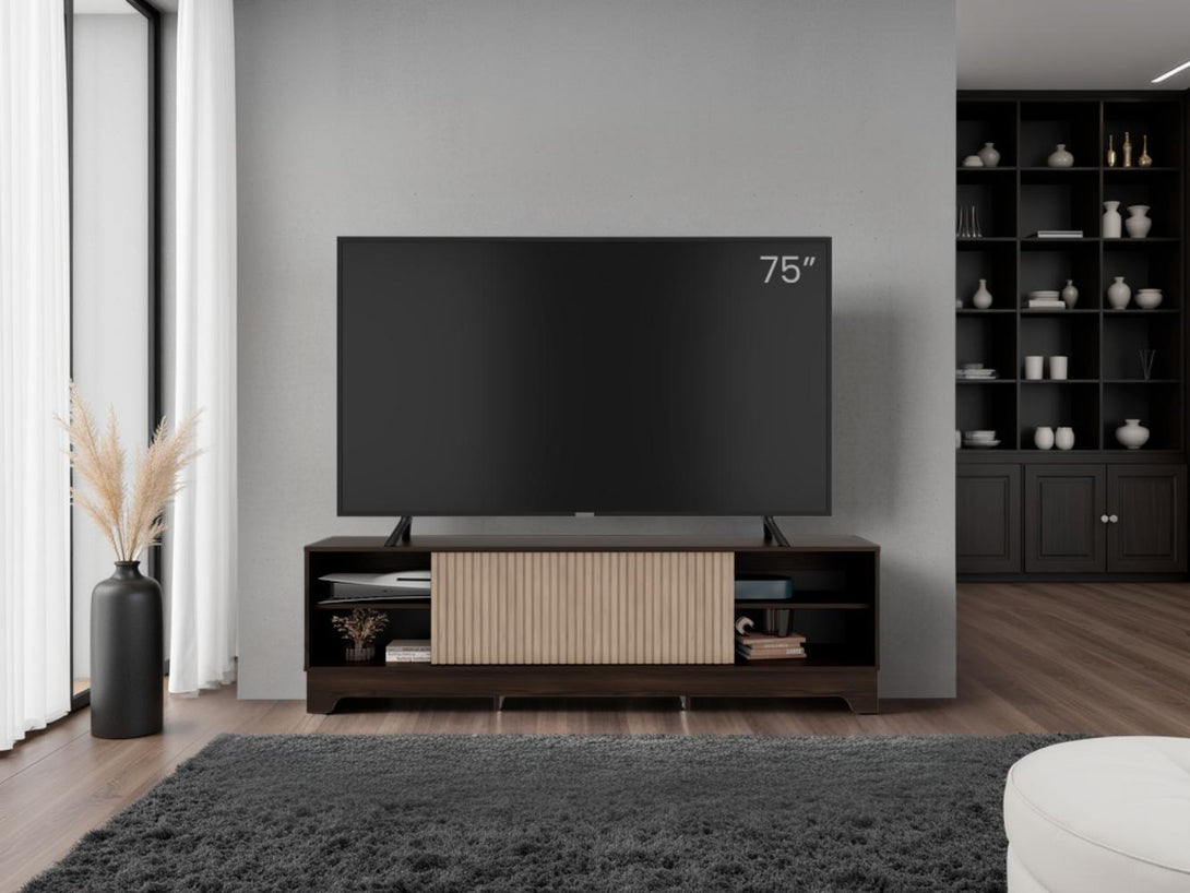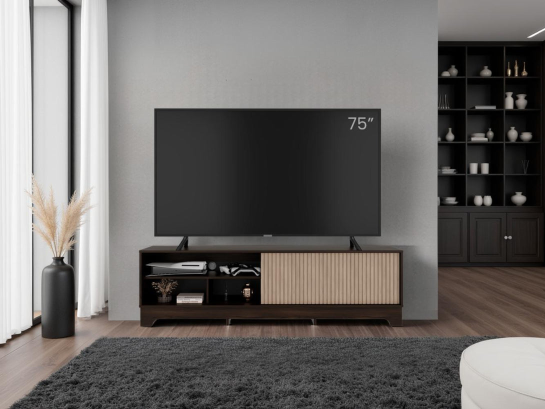 Mesa para TV Smith, Nogal Europeo y Roble Natural , con puerta corrediza