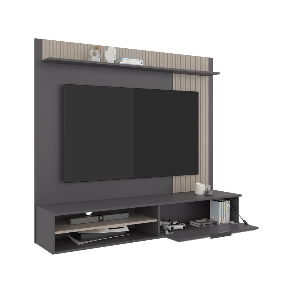 Panel de Tv Dover, Plata Oscuro y Bardolino, con espacio para tv desde 55 a 70"