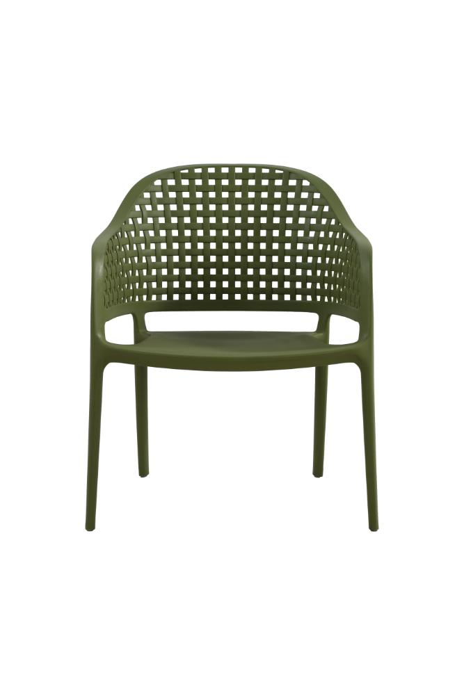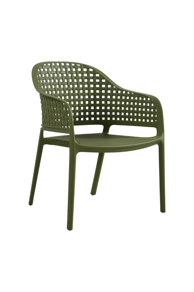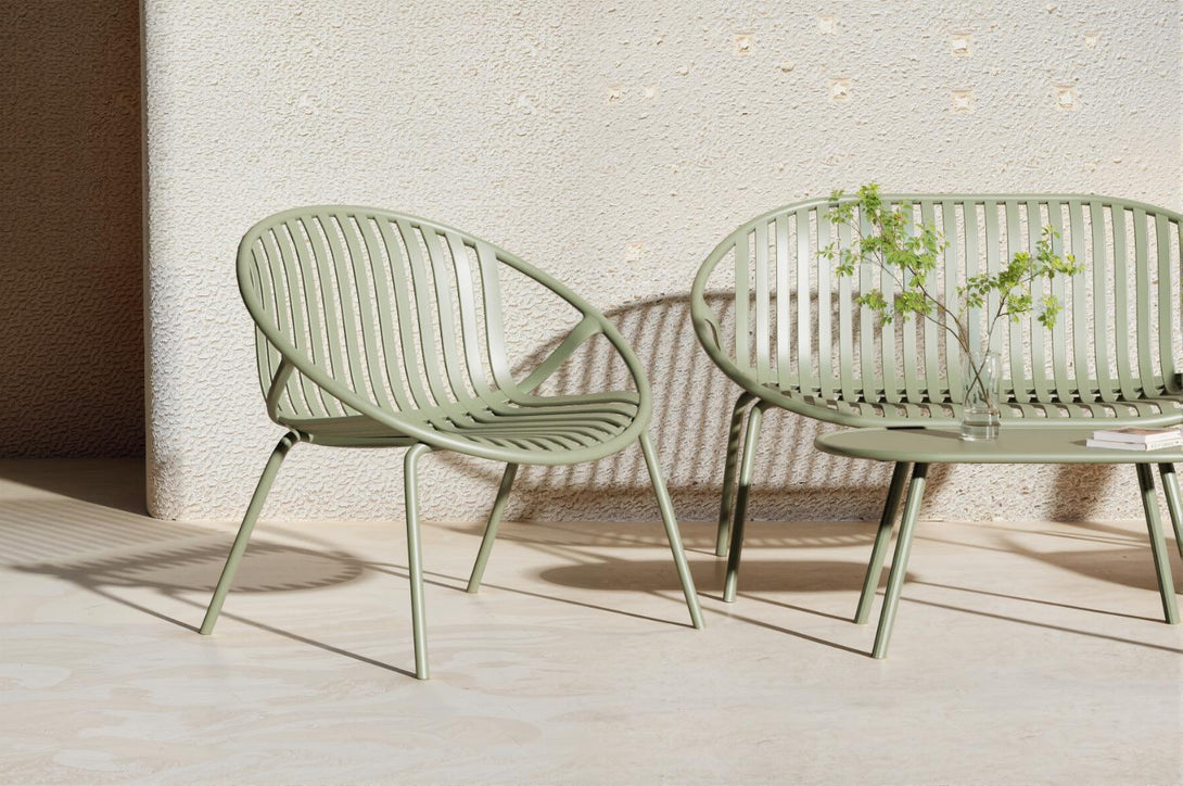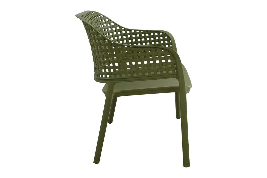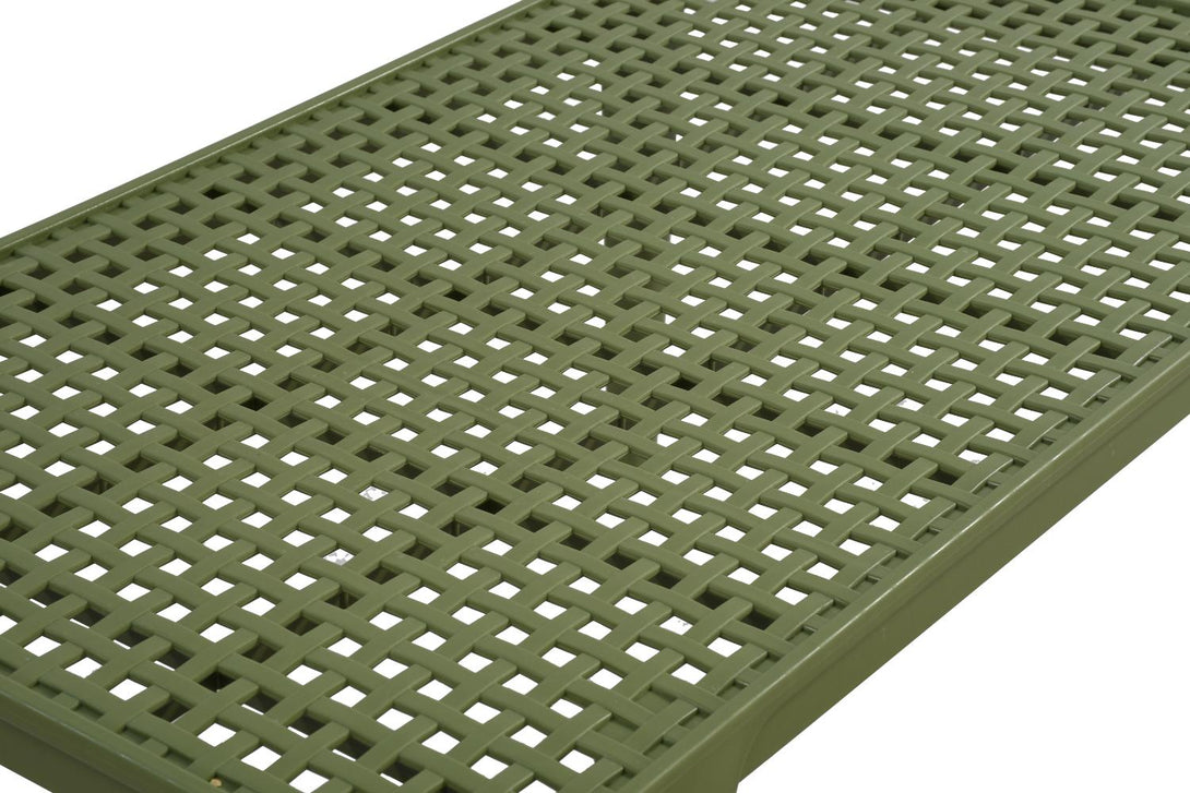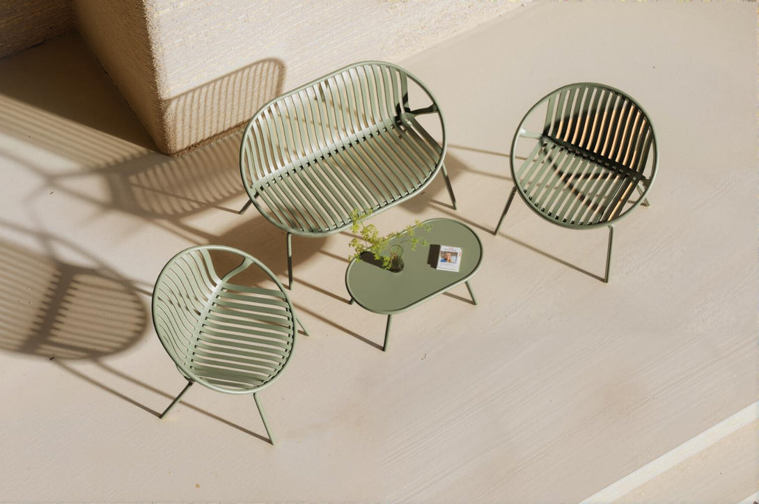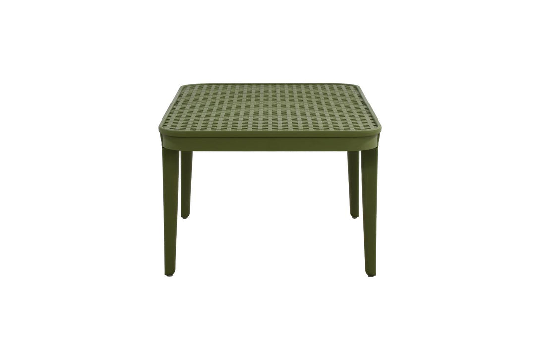 Elaborado en Polipropileno y protección a los rayos UV el set incluye mesa centro, dos sillas y un banco, en Color Verde Olivo