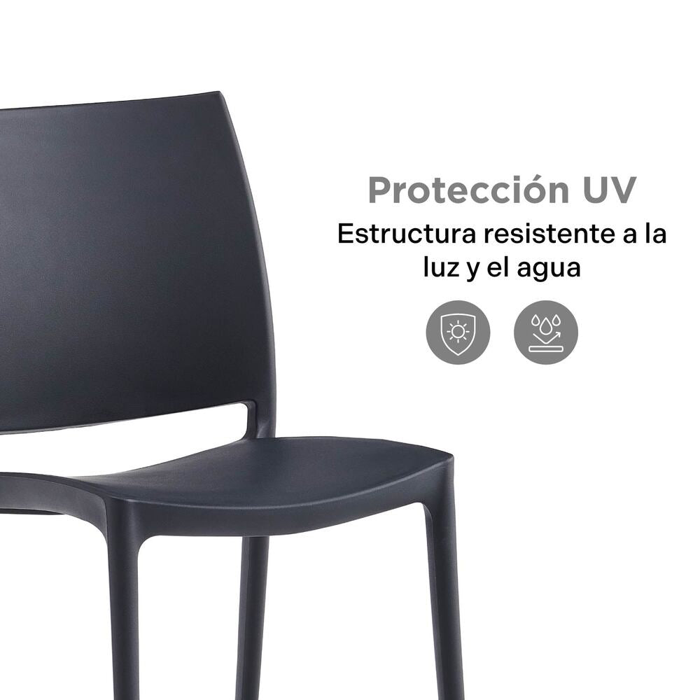 Cuenta con protección UV, lo que la convierte en una silla apta para exteriores